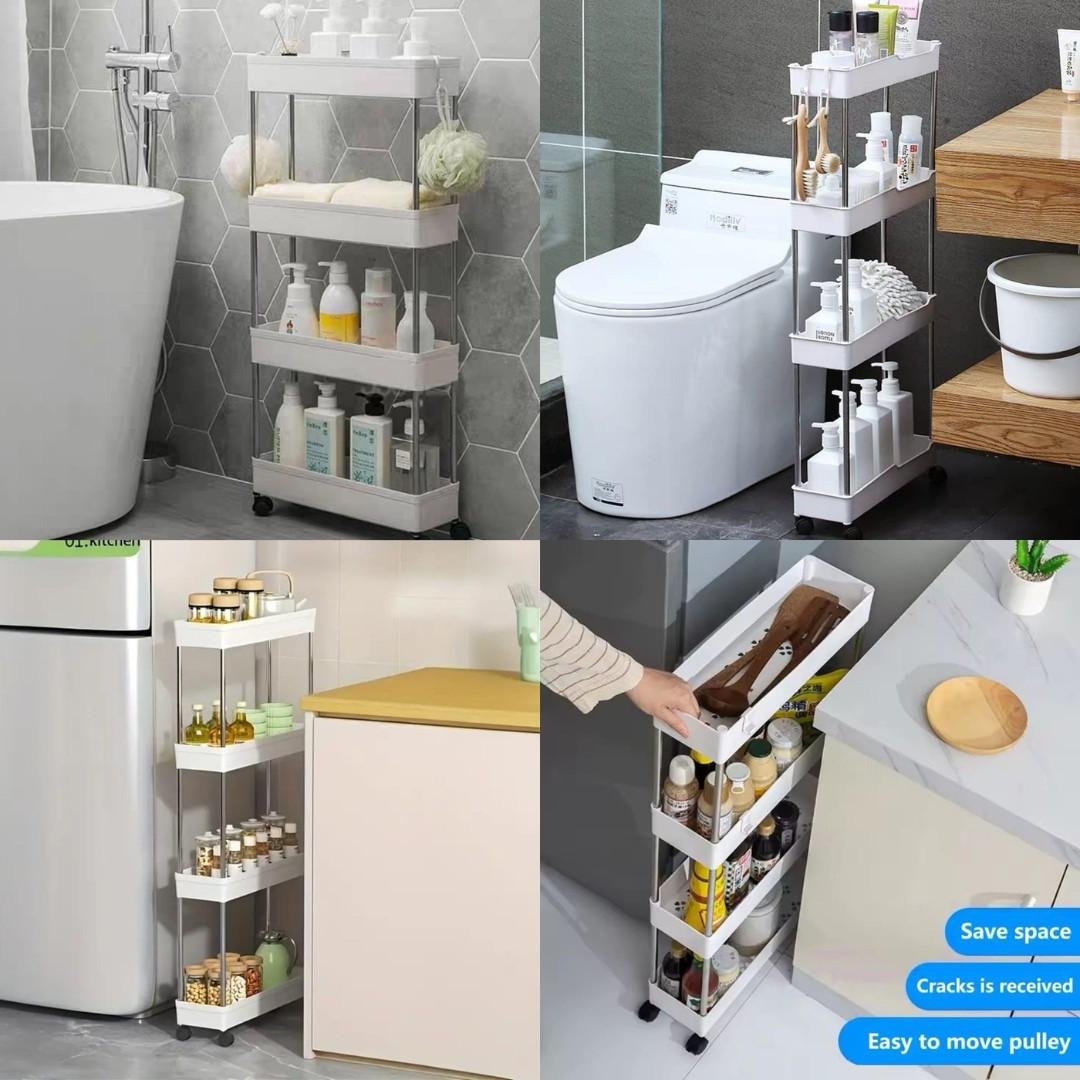 عربة عملية متعددة الاستخدامات بتصميم ذكي، مصممة خصيصًا للاستفادة من المساحات الضيقة مثل خلف الأبواب أو بجانب الغسالة أو الثلاجة.